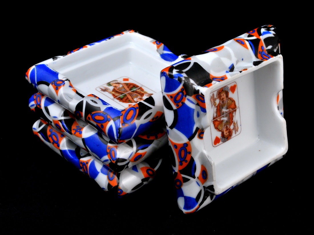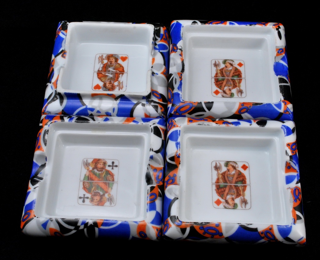Art deco ashtrays, 4 piece – playing card style
