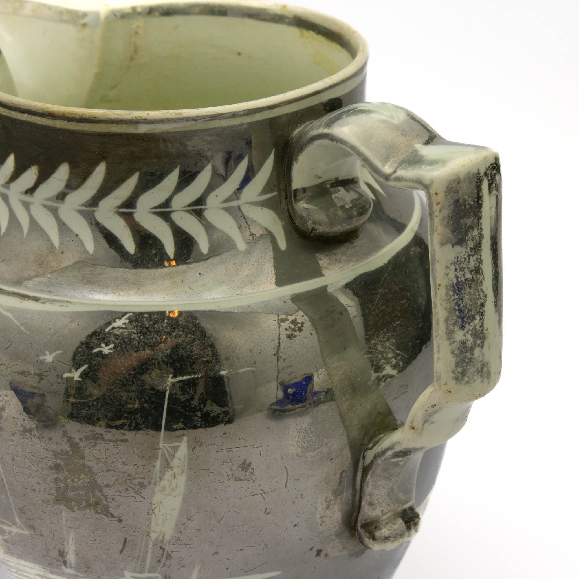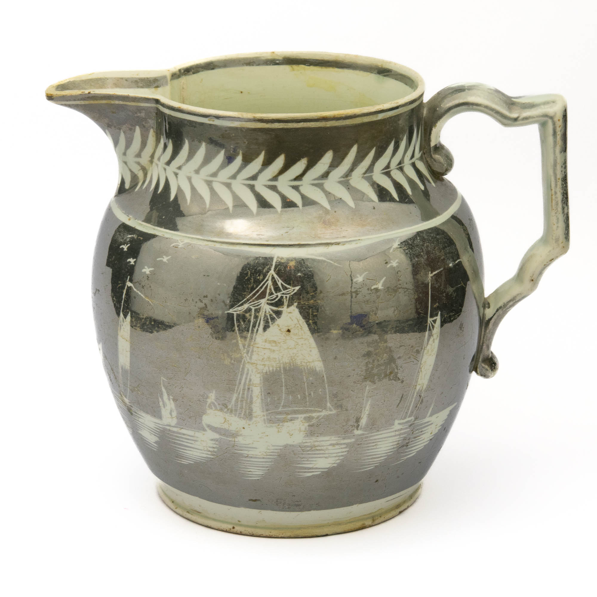 Antiikne portselanist mereteemaline kann Purjekad,19 sajandi algus