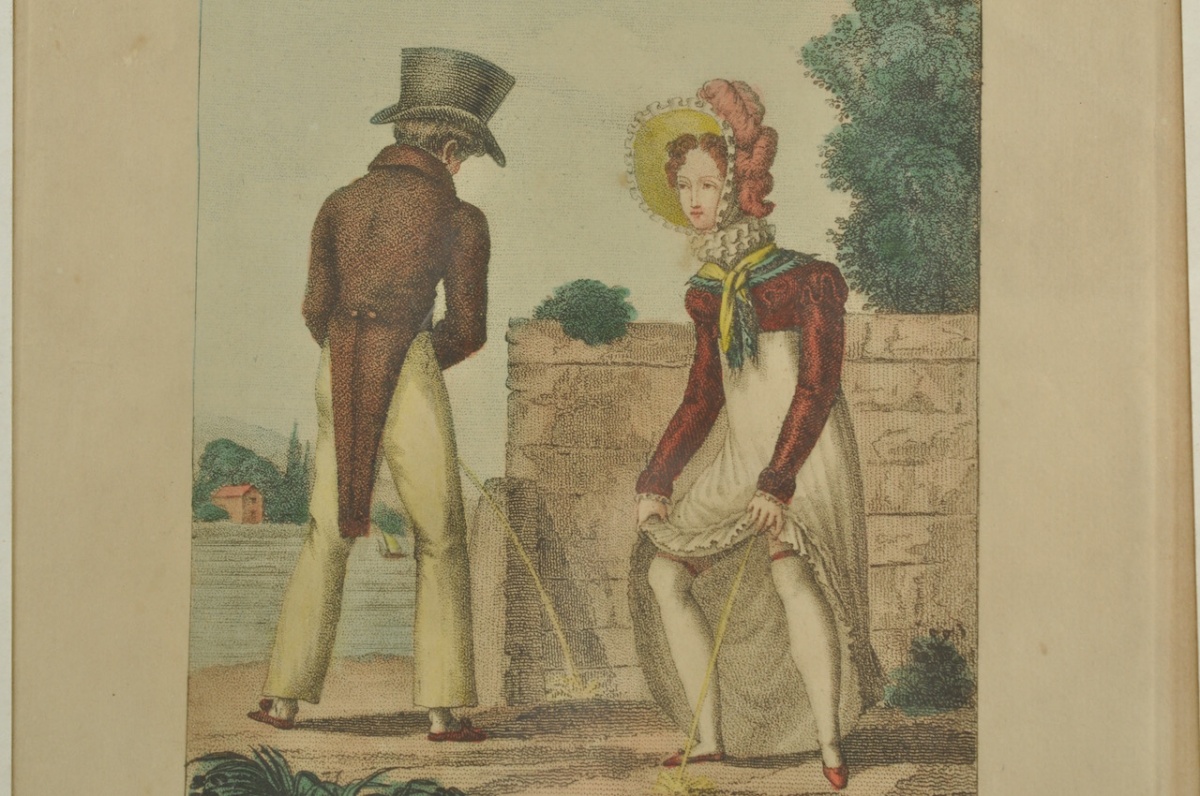 Antiikne värviline trükipilt Un besoin pressant-Pakiline vajadus