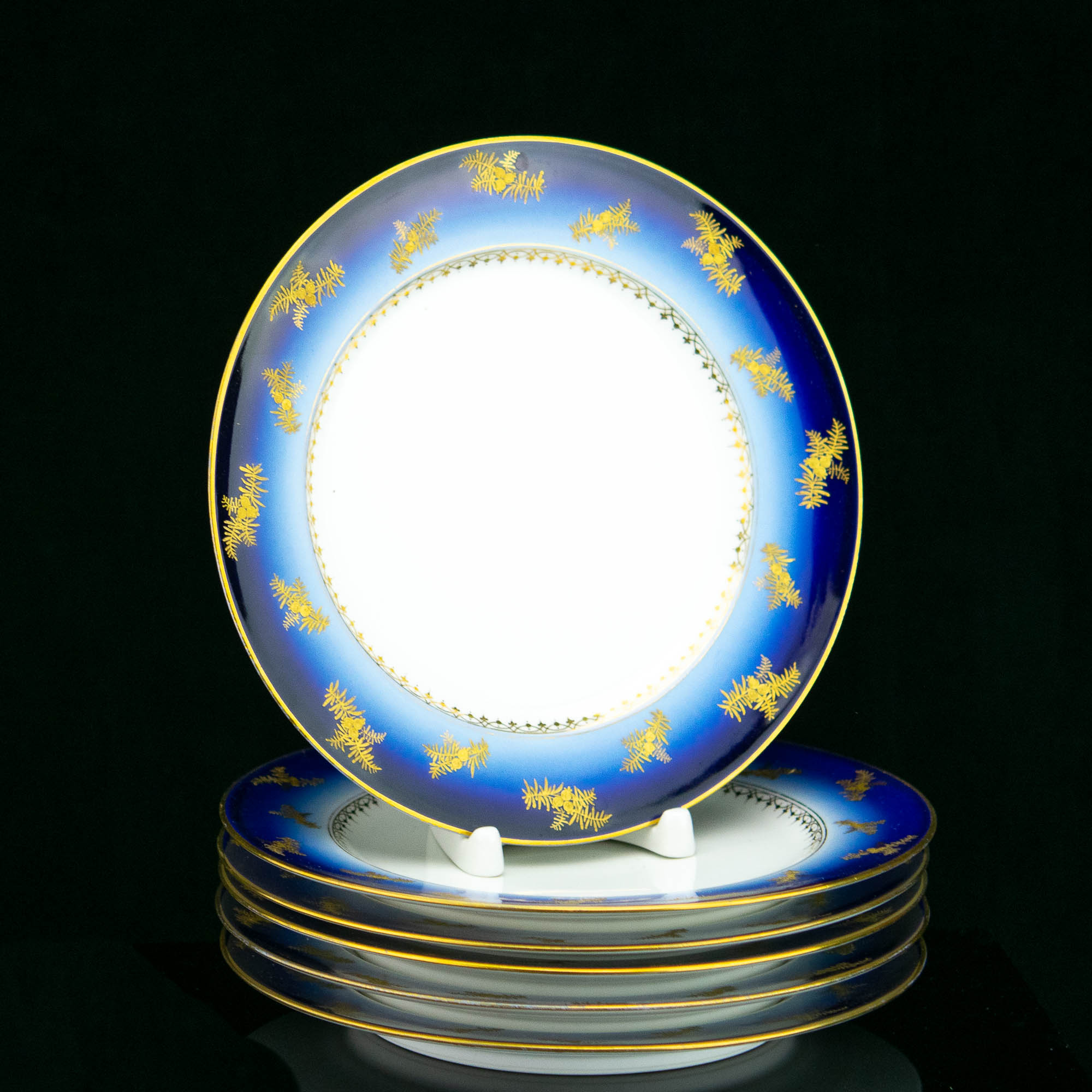 Antiiksed portselanist sinise randiga taldrikud 6 tk