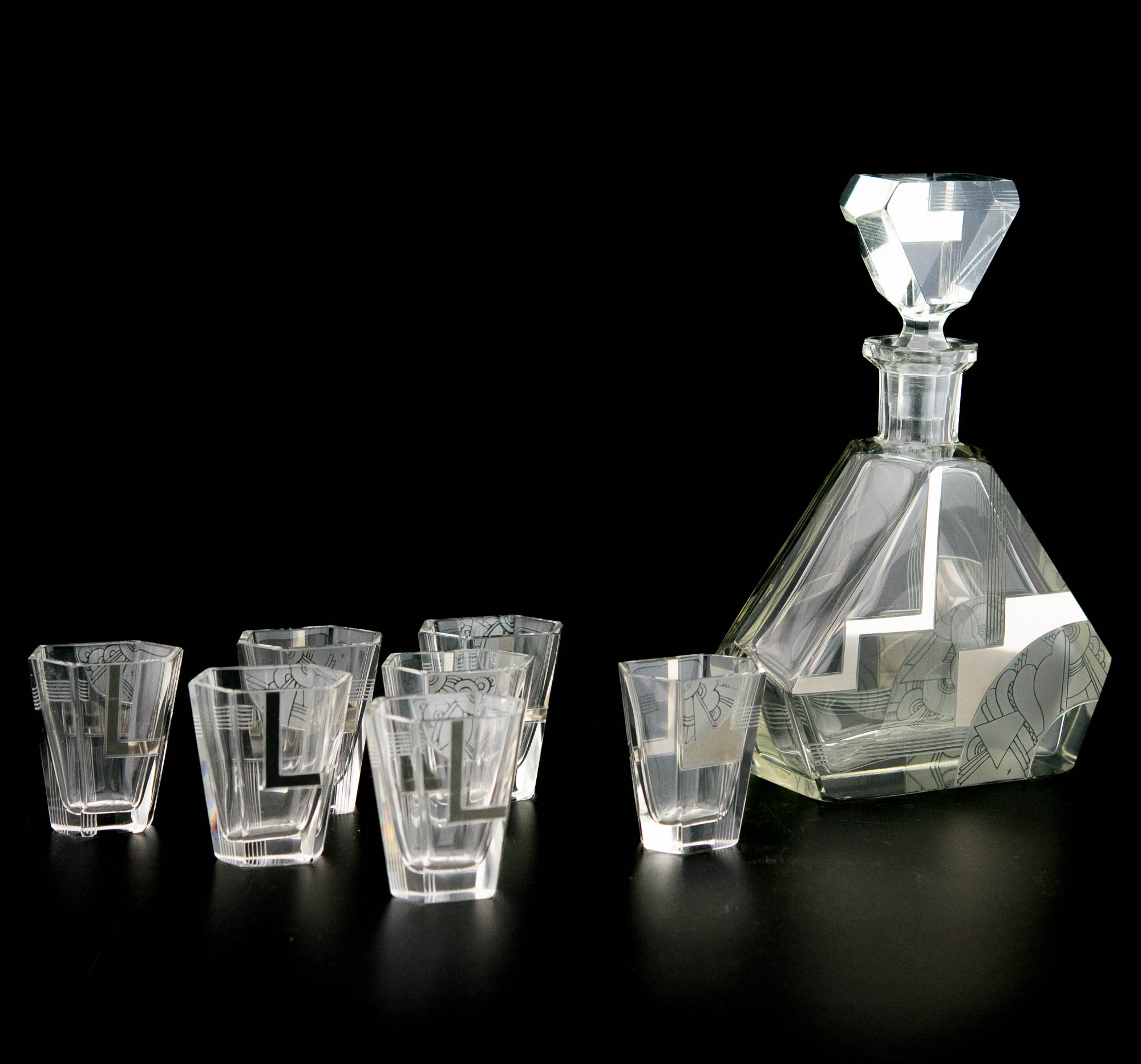Art-deco karahvin ja 7 pitsi