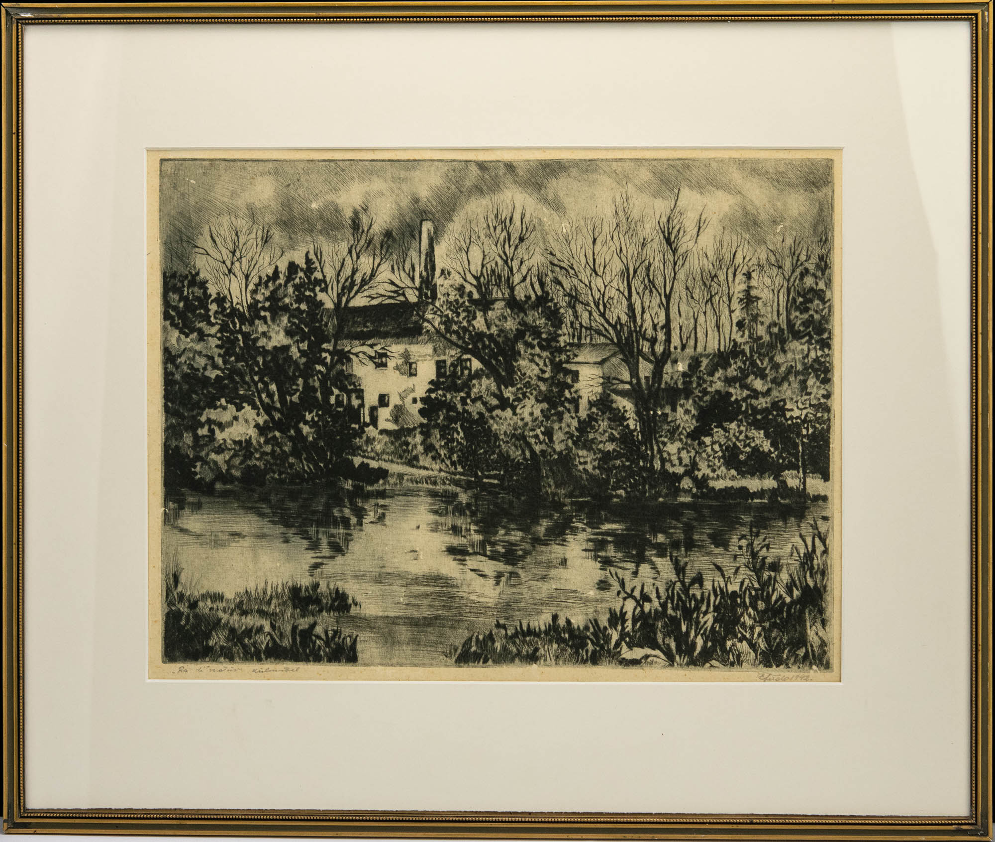 Ernst Tiido (1913-1957) graafika Raadi motiiv,kuivnõel 1942a