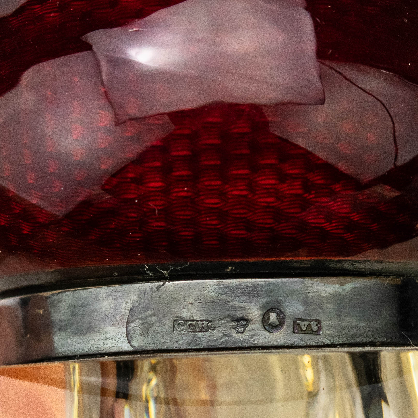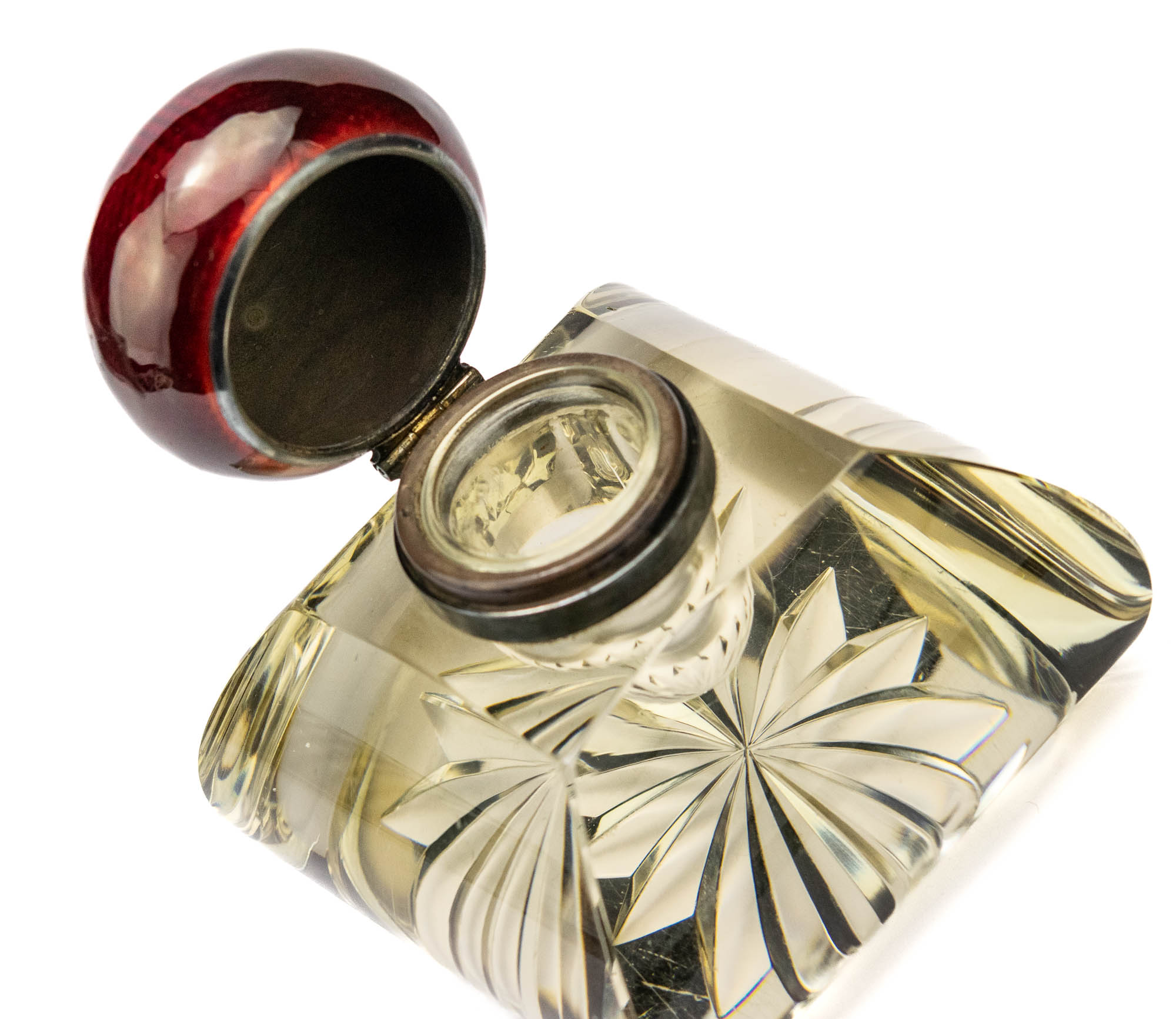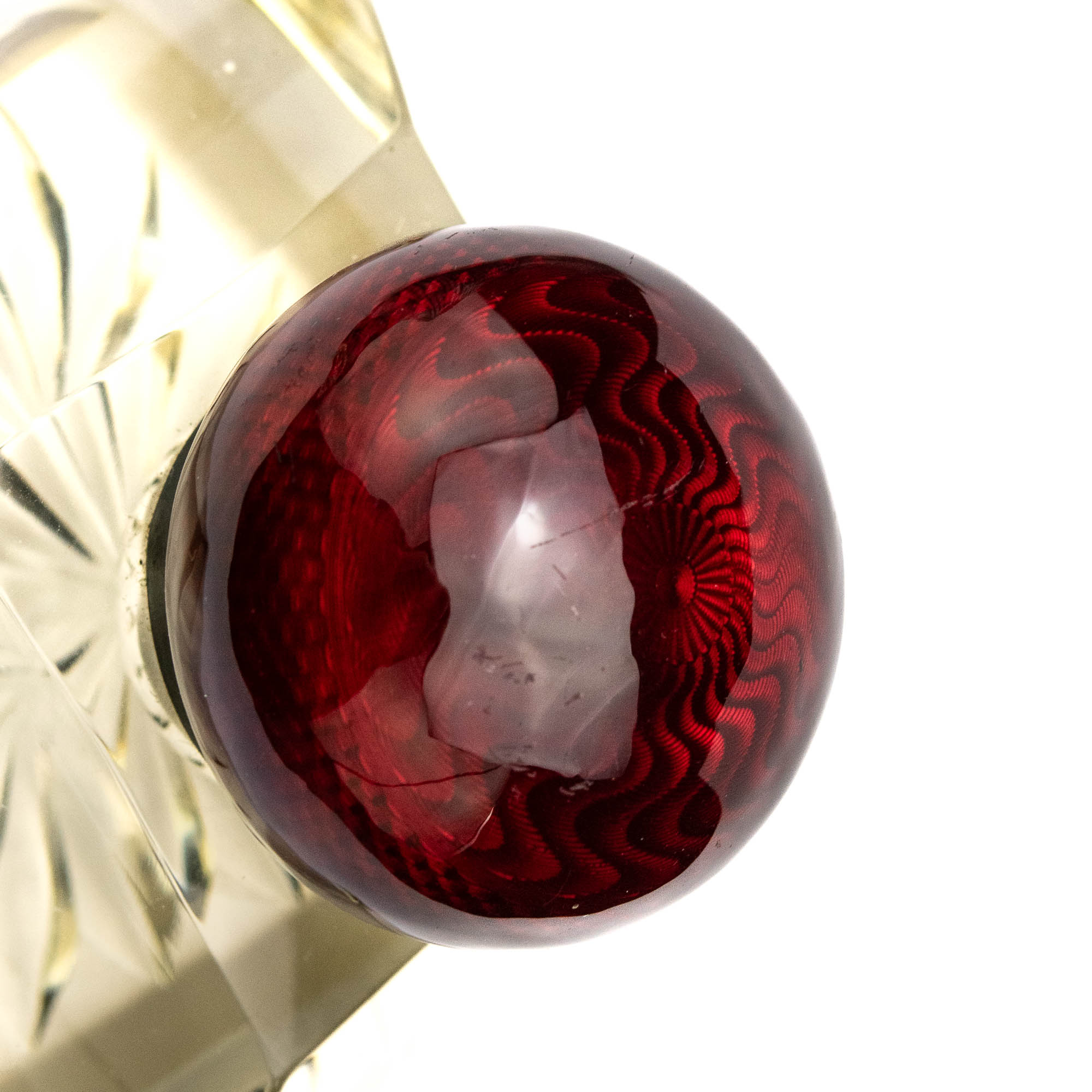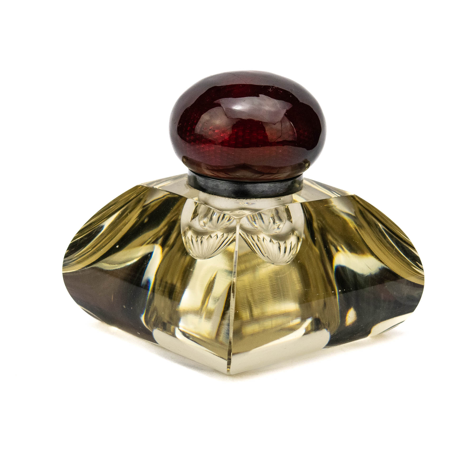 Klaasist tindipott cloisonne tehnikas punase korgiga
