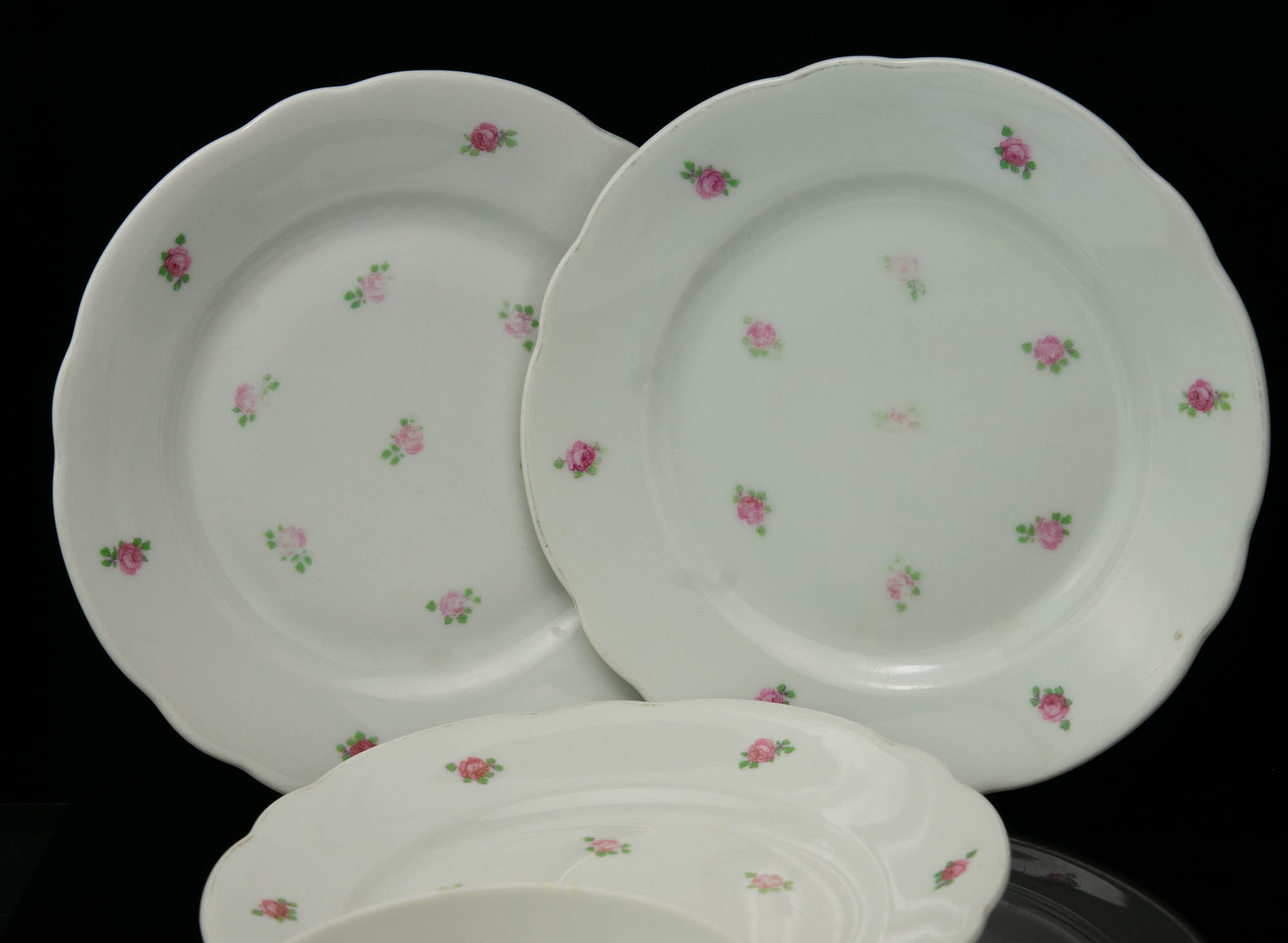 Kulunud.Ühel taldrikul on randil defekt.Taldriku läbimõõt 15 cm.
